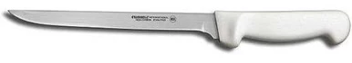 The Dexter Russell Basic Fillet Knife is a very long and flexible boning knife that is used to fillet or prepare fish. Blades are longer and more flexible than traditional boning knives so that they move easily along the backbone and ribs and under the skin of fish. These Basic Fillet Knives have handle grips made of White Polypropylene.