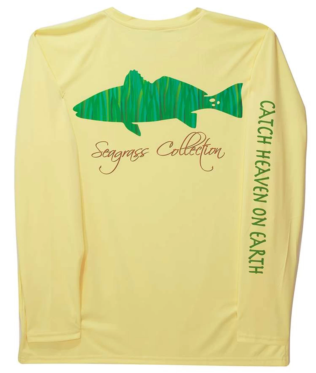 The iBig Seagrass Redfish Performance Long Sleeve Shirt is inspired by charter boat captains who know that sun protection is a must out on the water. Having the right sun protection is as important as having the right gear. Whether saltwater fishing or freshwater fishing this long sleeve shirt will keep you protected and is designed for the harsh UV rays of the sun. Made with the angler in mind with breathable and moisture wicking fabric that will keep you cool all day on the water. This long sleeve performance shirt features a redfish in the seagrass printed design across the back.