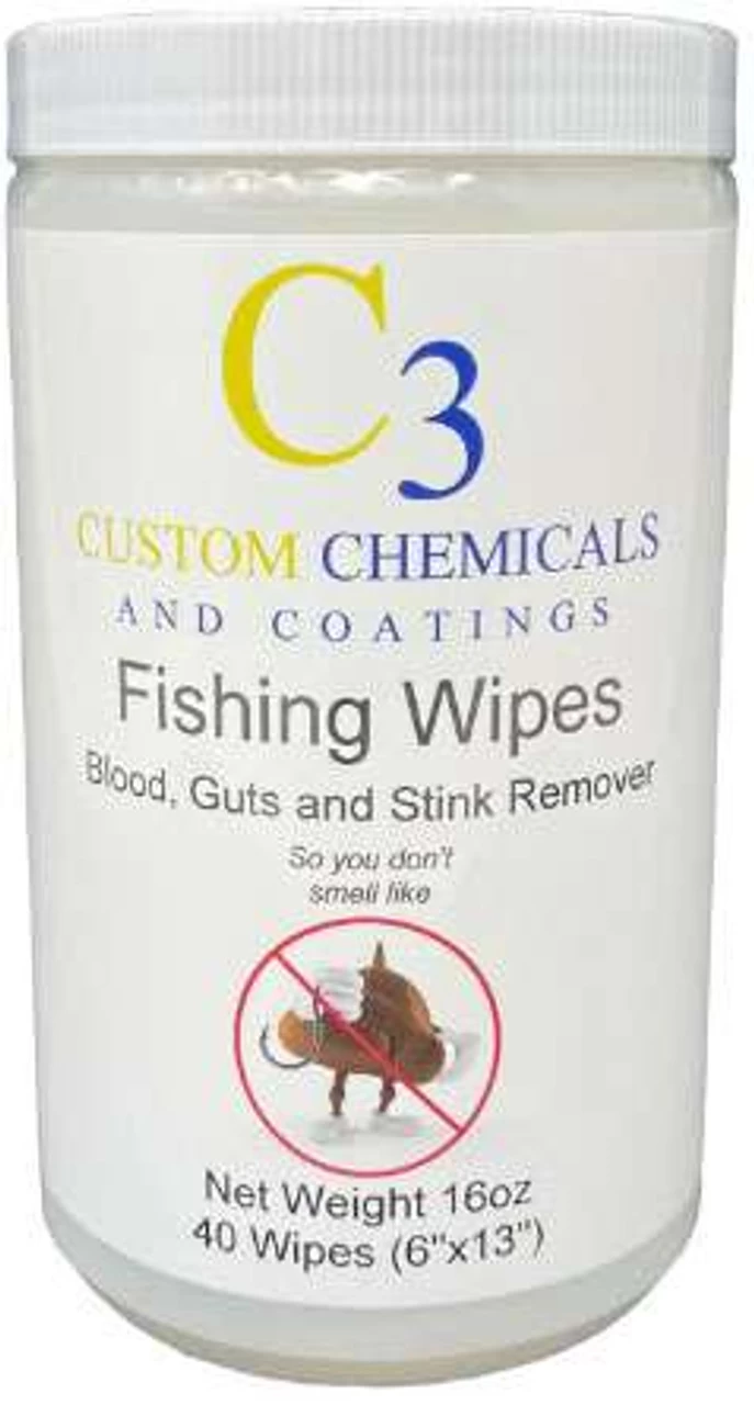 The Salts Gone Fishing Wipes removes blood, guts and stink from your hands and boat. They are also great for cleaning coolers and anything else that ges covered in fish. Each wipes measures 6 in. x 13 in. 40 wipes per canister.