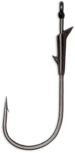 VMC Flippin’ Hooks feature a double spike baitholder that securely keeps soft plastics in place and features a resin closed eye to eliminate line slip-through. These hooks are designed to have enough space above the baitholder to allow room for a snell knot, but can also be tied with standard knotting.