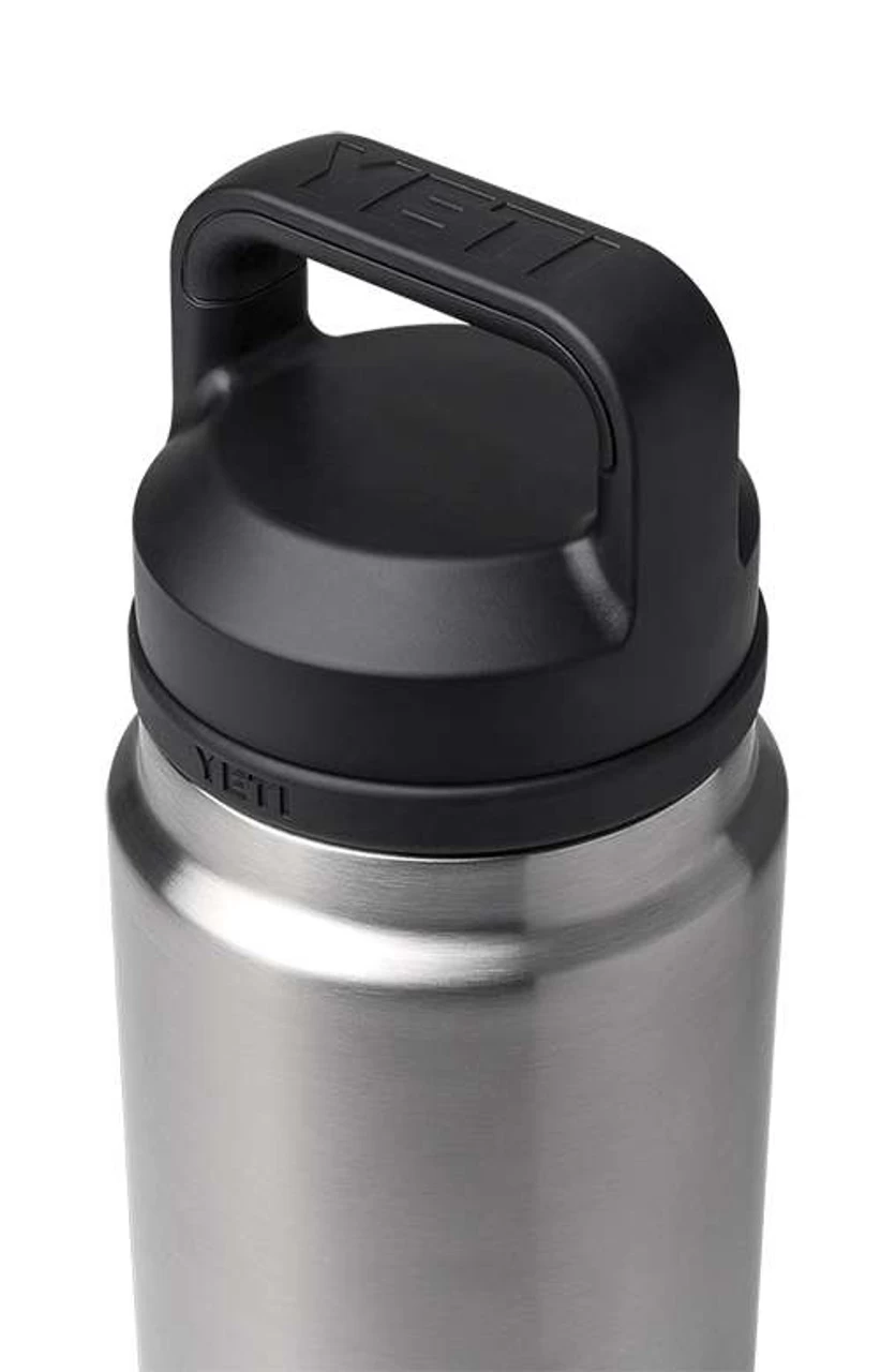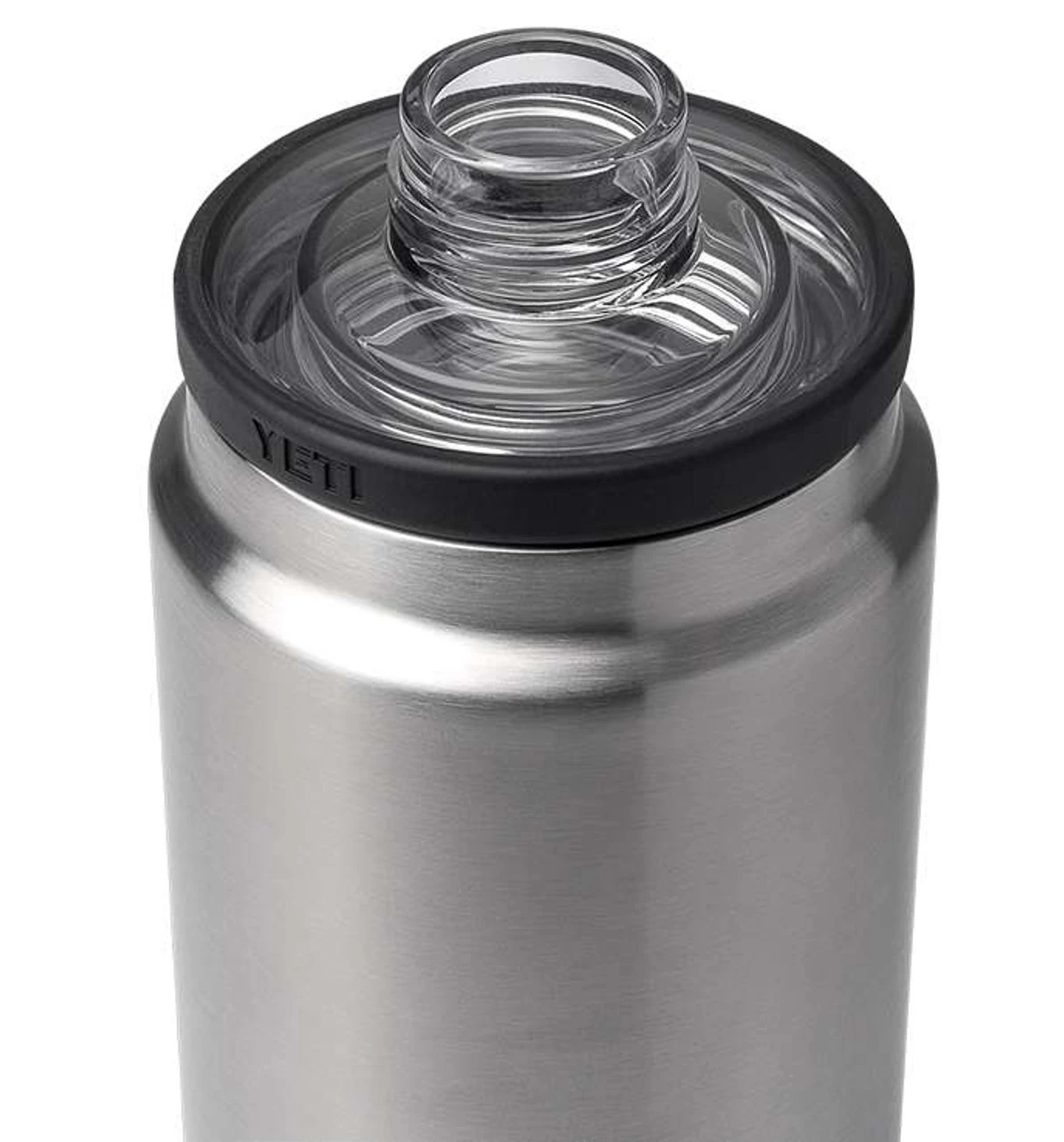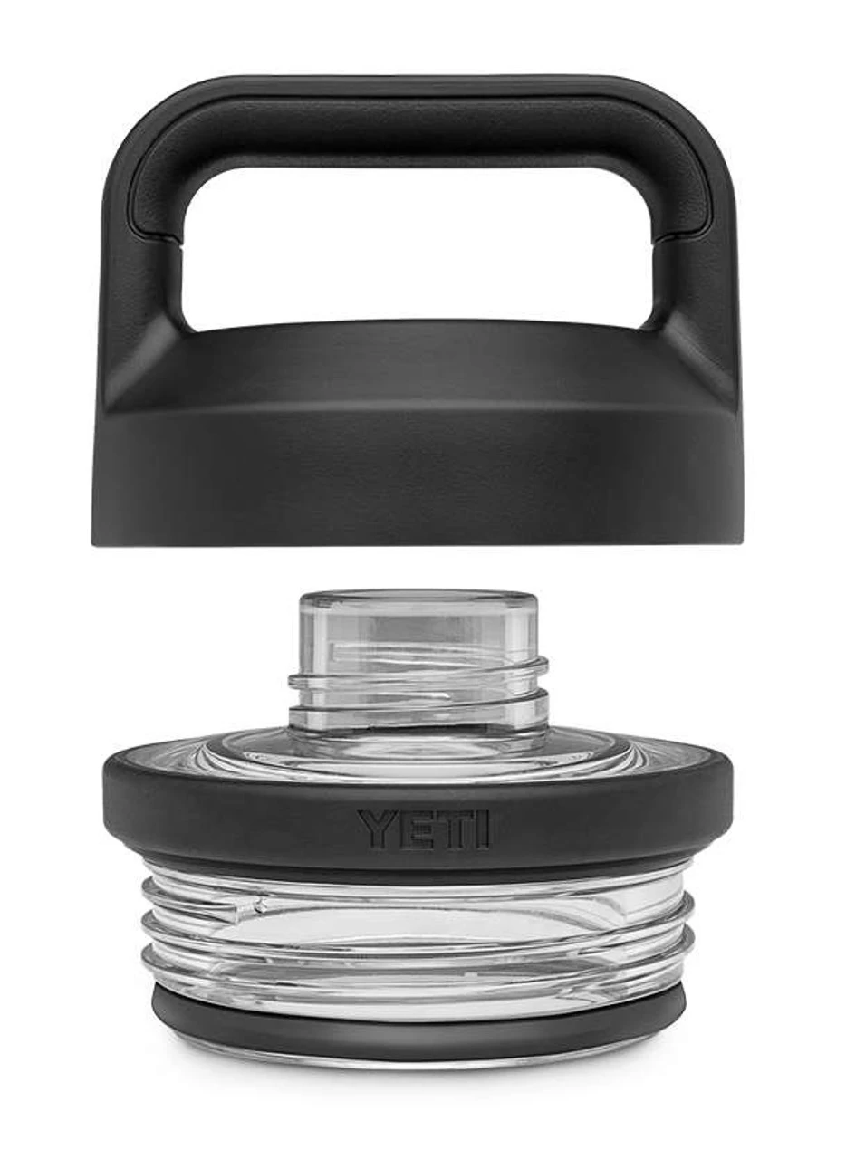 The YETI Rambler Bottle Chug Cap features TripleHaul handle that easily twists to open. This top has a classic spout for large easy sips. This top is also shatter resistant and dishwasher safe.